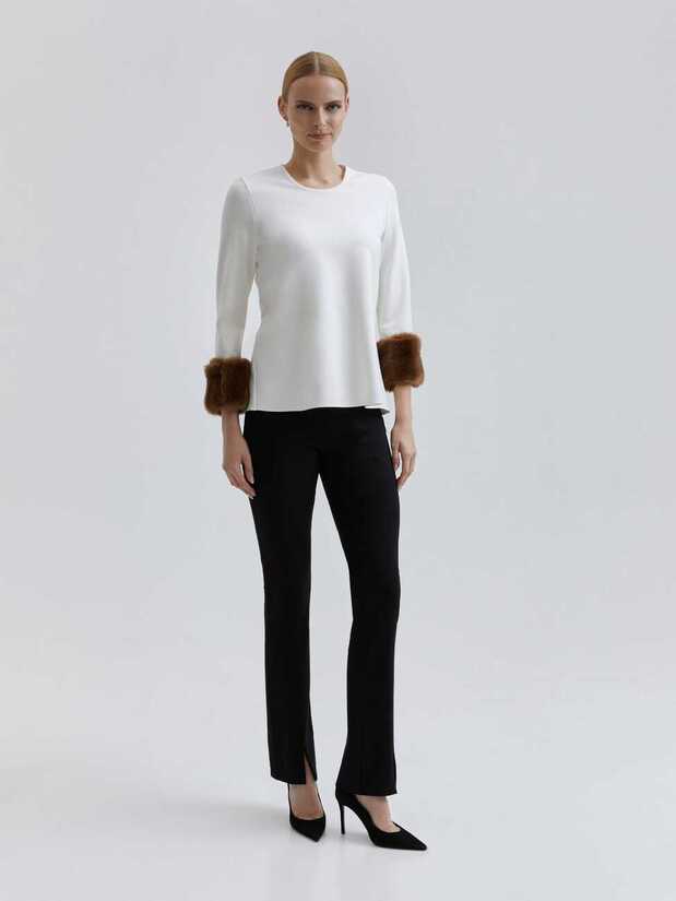 Naisten vaatteet ja asusteet » Alaosat » Kangashousut » Andiata mustat Catryn housut Andiata Andiata mustat Catryn housut 2/23 Lisätiedot › Koko 36 229,00 € Määrä Lisää tilaukseen ToimituskulutIlmainen nouto myymälästäToimitus noutopisteeseen 5,90eur Varastossa Toimitusaika 1-4 arkipäivää Nämä hieman lahkeista levenevät housut ovat täydellinen valinta, kun haluat yhdistää mukavuuden ja tyylikkyyden. Ne on valmistettu miellyttävästä stretch-jersey-materiaalista, mikä tekee niistä erityisen mukavat päällä. Housuissa on tyylikkäitä tikkausyksityiskohtia saumoissa, jotka lisäävät niiden hienostunutta ulkonäköä. Lisäksi edessä on halkiot, jotka tuovat housuihin liikkumavaraa ja lisäävät tyylikkyyttä. Mallimme on 179 cm pitkä ja käyttää kokoa 36, joten voit ottaa siitä viitettä oman kokosi valitsemiseen. Koon 38 sisäsauman pituus on noin 83 cm, joten se sopii erinomaisesti monenlaisille pituuksille. Housujen materiaali koostuu 68% viskoosista, 27% polyamidista ja 5% elastaanista, mikä tekee niistä joustavat ja muotoa säilyttävät. Tämä mahdollistaa mukavan istuvuuden ja liikkumisen vapauden. Housut on helppo pitää siistinä, sillä ne voi pestä hellävaraisesti koneessa 30 asteessa. Voit myös iloita siitä, että housujen kangas on saanut OEKO-TEX -sertifikaatin, mikä takaa sen, että se on valmistettu ympäristöystävällisin ja turvallisin perustein. Nämä housut ovat loistava valinta, jos arvostat mukavuutta ja tyylikkyyttä samassa vaatteessa, ja haluat varmistaa, että vaatteesi on valmistettu korkealaatuisesti ja vastuullisesti. Näytä lisää tuotteitaAndiata -tuotteitaKangashousut tuoteryhmästä