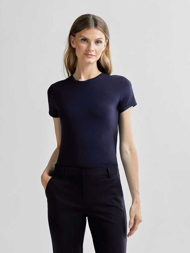 Naisten vaatteet ja asusteet » Yläosat » Topit & T-paidat » Andiata tummansininen T-paita Sibi 2 Andiata Andiata tummansininen T-paita Sibi 2 Tummansininen, joustava, pehmeä. Lisätiedot › Koko S M 89,00 € Määrä Lisää tilaukseen ToimituskulutIlmainen nouto myymälästäToimitus noutopisteeseen 5,90eur Varastossa Toimitusaika 1-4 arkipäivää Tämä Andiatan miellyttävä ja napakka trikoopaita tarjoaa tyköistuvan istuvuuden pyöreällä pääntiellä. Malli on 180 cm pitkä ja käyttää kokoa S, mikä antaa viitettä istuvuudesta. Koon M takapituus on noin 62 cm. Materiaalina on käytetty 96% bambua ja 4% elastaania, mikä korostaa luonnonmukaisuutta ja joustavuutta. Paitaa suositellaan hellävaraiseen konepesuun 30 asteessa, mikä vahvistaa materiaalin kestävyyttä ja säilyttää sen laadun. Tämä tyylikäs T-paita yhdistää mukavuuden, luonnonmateriaalin ja huolellisen muotoilun, mikä tekee siitä monikäyttöisen ja kestävän vaatekappaleen. Näytä lisää tuotteitaAndiata -tuotteitaTopit & T-paidat tuoteryhmästä