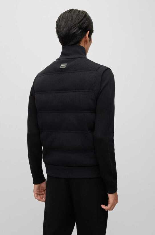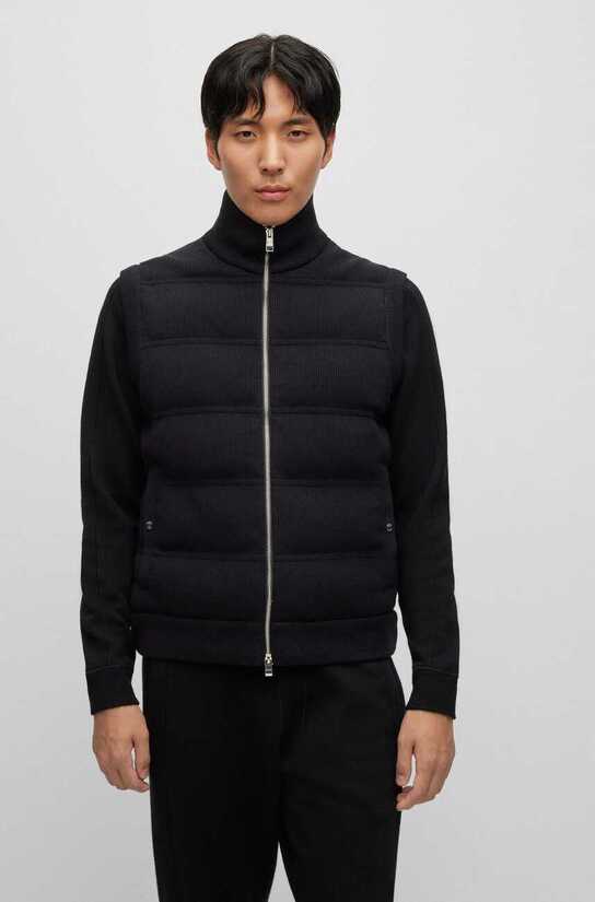 Tämä BOSS Menswearin regular istuvuuden liivi on valmistettu ribatusta puuvillasta ja villasta, ja siinä on yksityiskohtaisena logomerkki ja monogrammivuori.